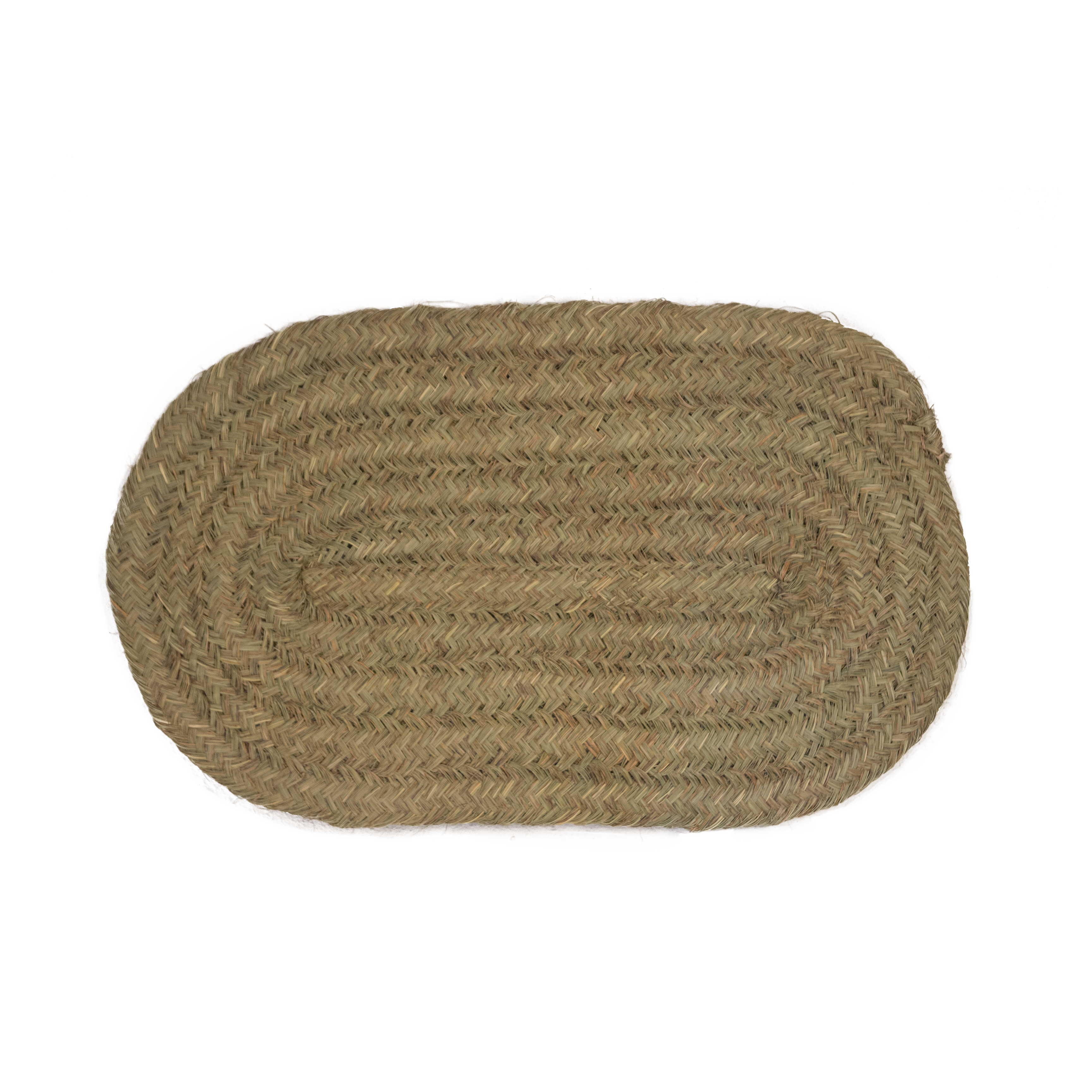 Alfombra ovalada de esparto de diferentes medidas de largo. Antiguamente se utilizaba para poner en las puertas y retirar el barro del calzado. Se pueden utilizar en interiores y exteriores. Actualmente se suele utilizar como objeto de decoración en cualquier lugar del hogar. Es un producto hecho a mano nacional con una larga tradición y muy resistente además de práctico.
