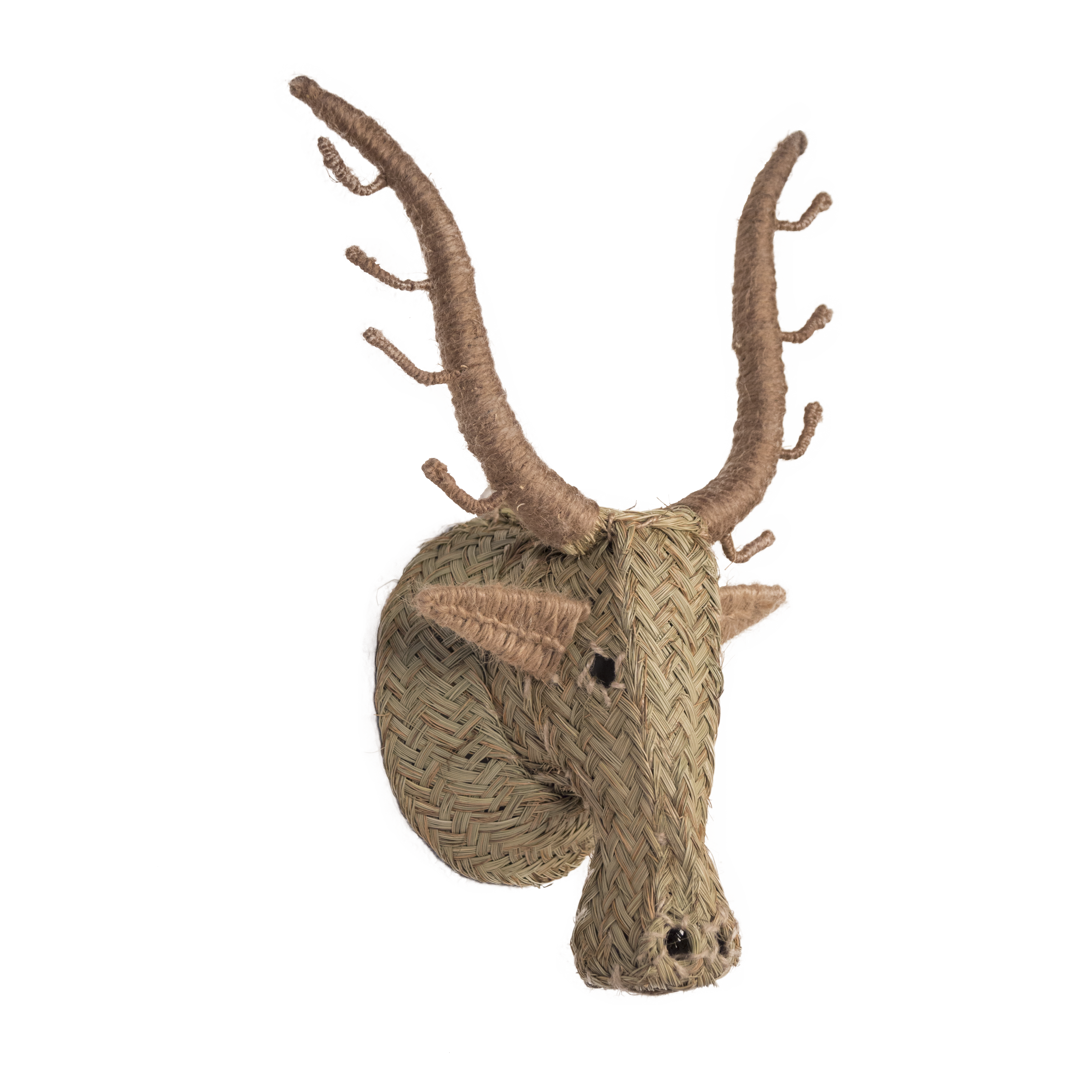 Cabeza de ciervo de esparto. Disponible en distintos tamaños. Ideal como detalle decorativo para crear ambientes únicos y dar a tu hogar, negocio o evento un toque natural. Es un producto hecho a mano nacional con una larga tradición y muy resistente además de práctico.