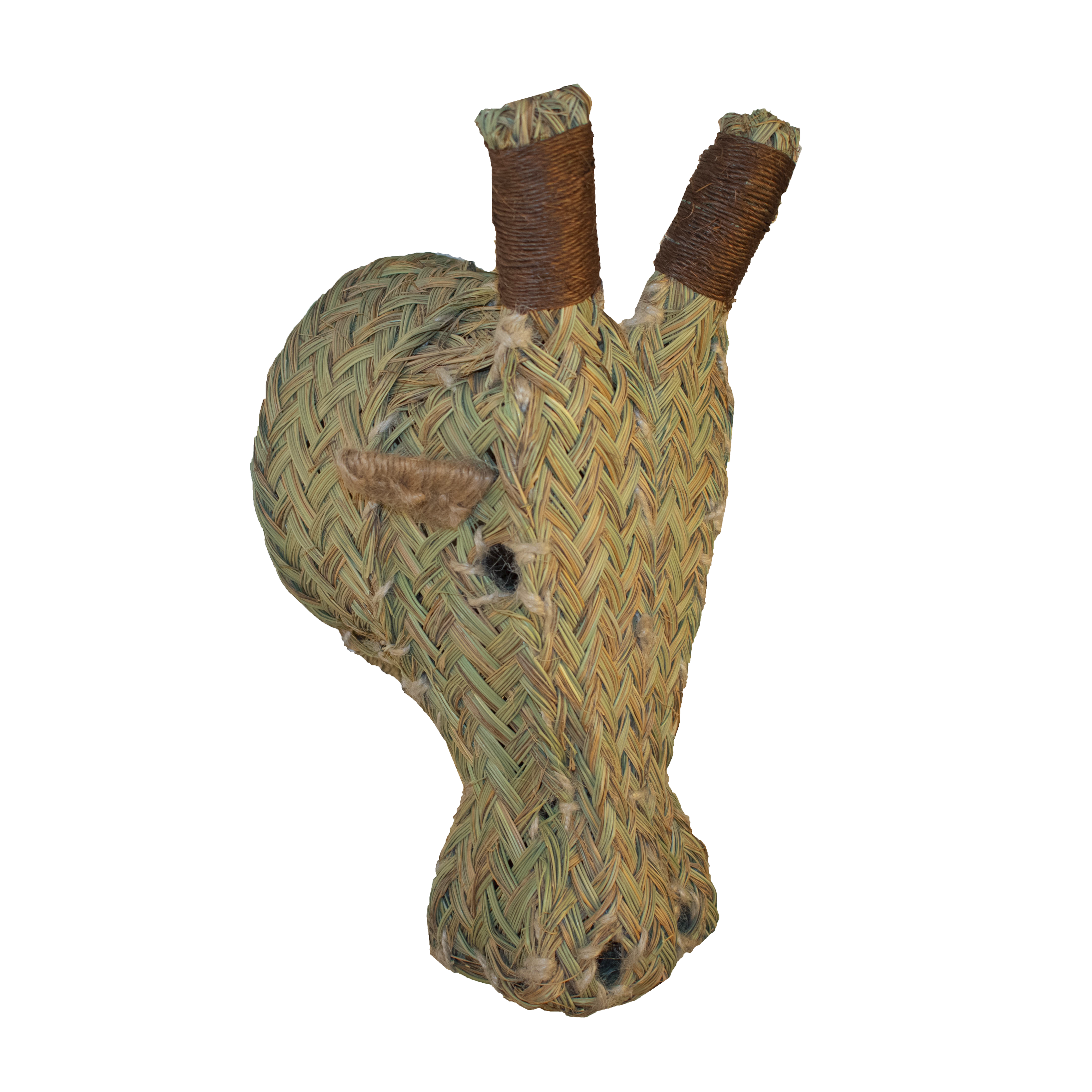 Cabeza de jirafa de esparto. Disponible en distintos tamaños. Ideal como detalle decorativo para crear ambientes únicos y dar a tu hogar, negocio o evento un toque natural. Es un producto hecho a mano nacional con una larga tradición y muy resistente además de práctico.