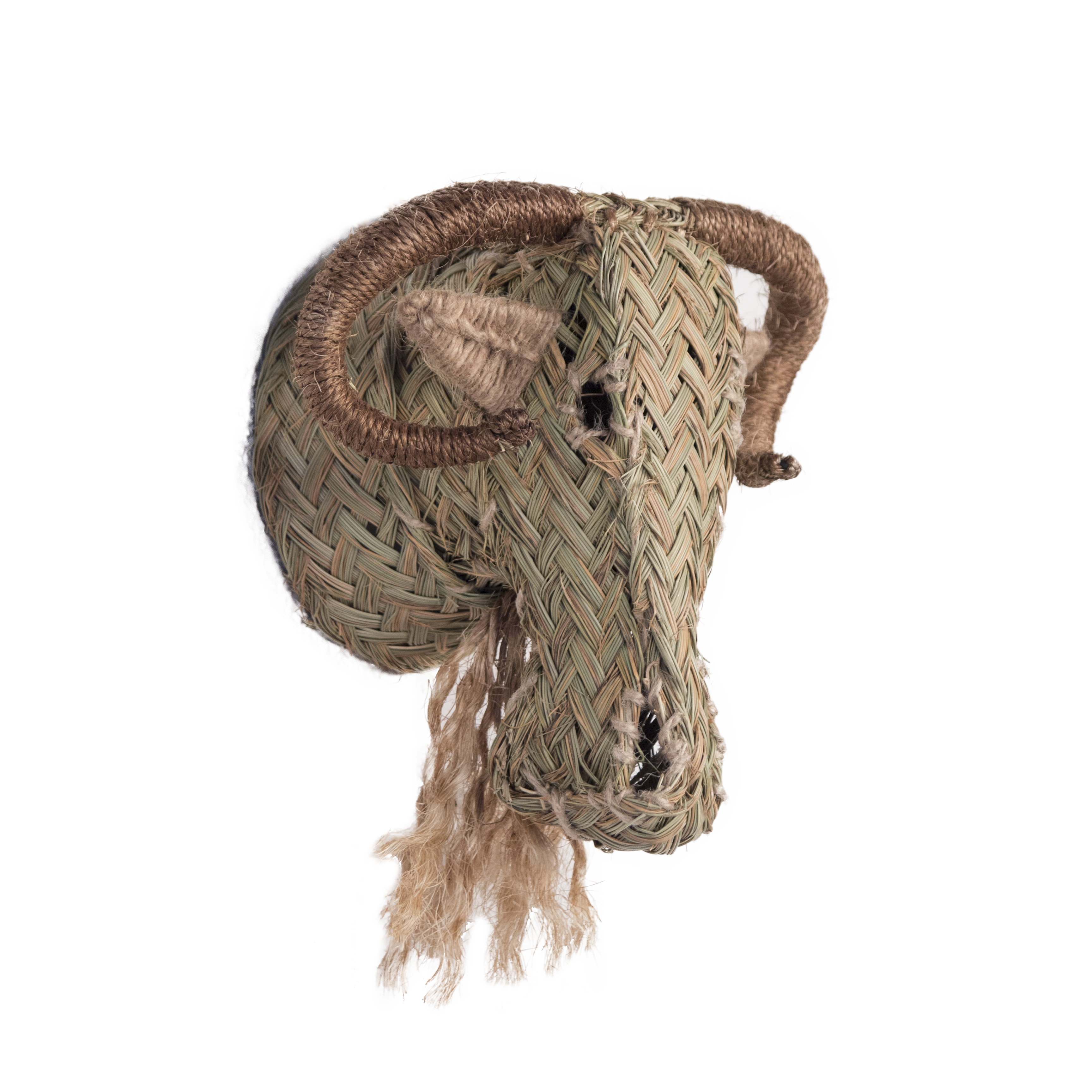 Cabeza de muflón de esparto. Disponible en distintos tamaños. Ideal como detalle decorativo para crear ambientes únicos y dar a tu hogar, negocio o evento un toque natural. Es un producto hecho a mano nacional con una larga tradición y muy resistente además de práctico.