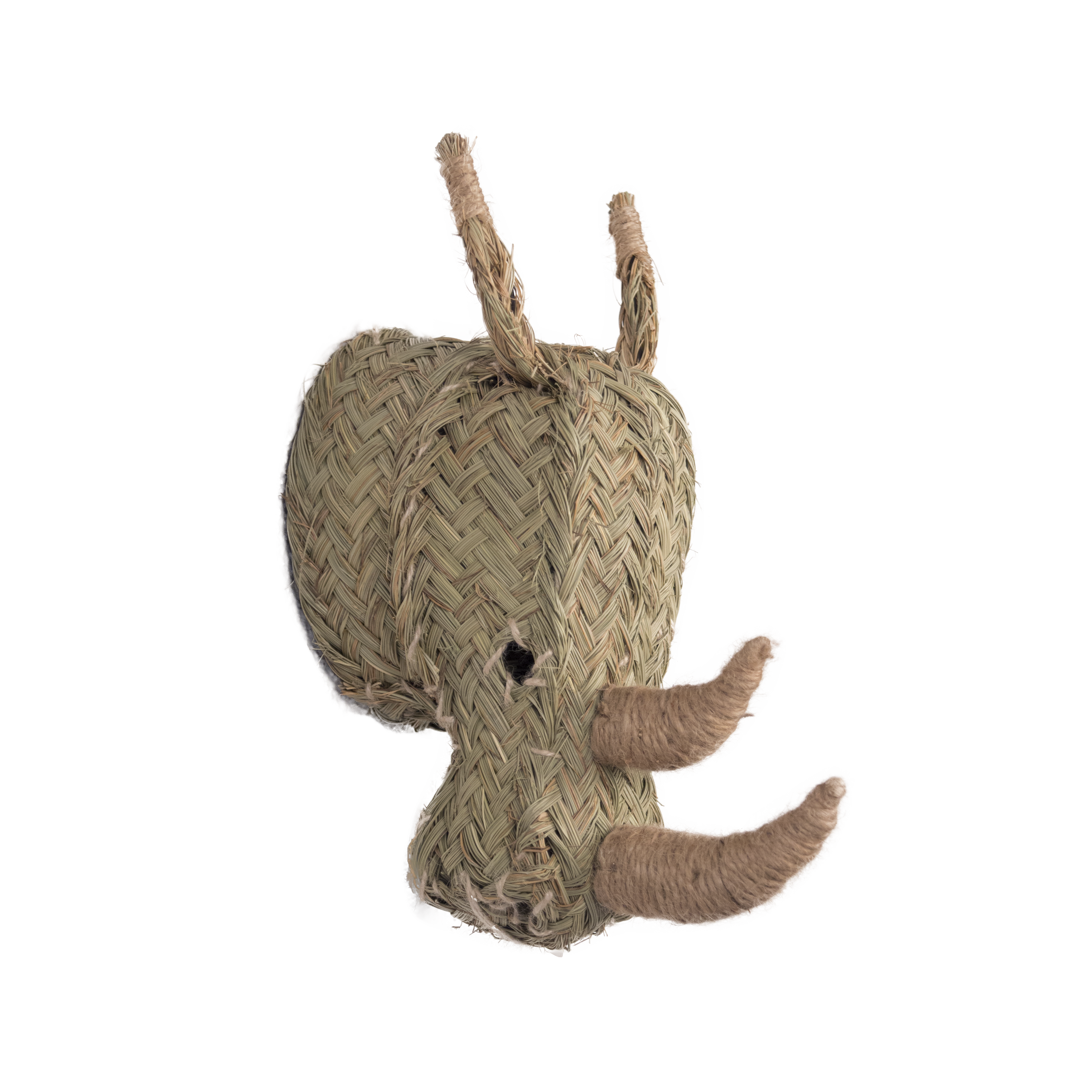 Cabeza de rinoceronte de esparto. Disponible en distintos tamaños. Ideal como detalle decorativo para crear ambientes únicos y dar a tu hogar, negocio o evento un toque natural. Es un producto hecho a mano nacional con una larga tradición y muy resistente además de práctico.