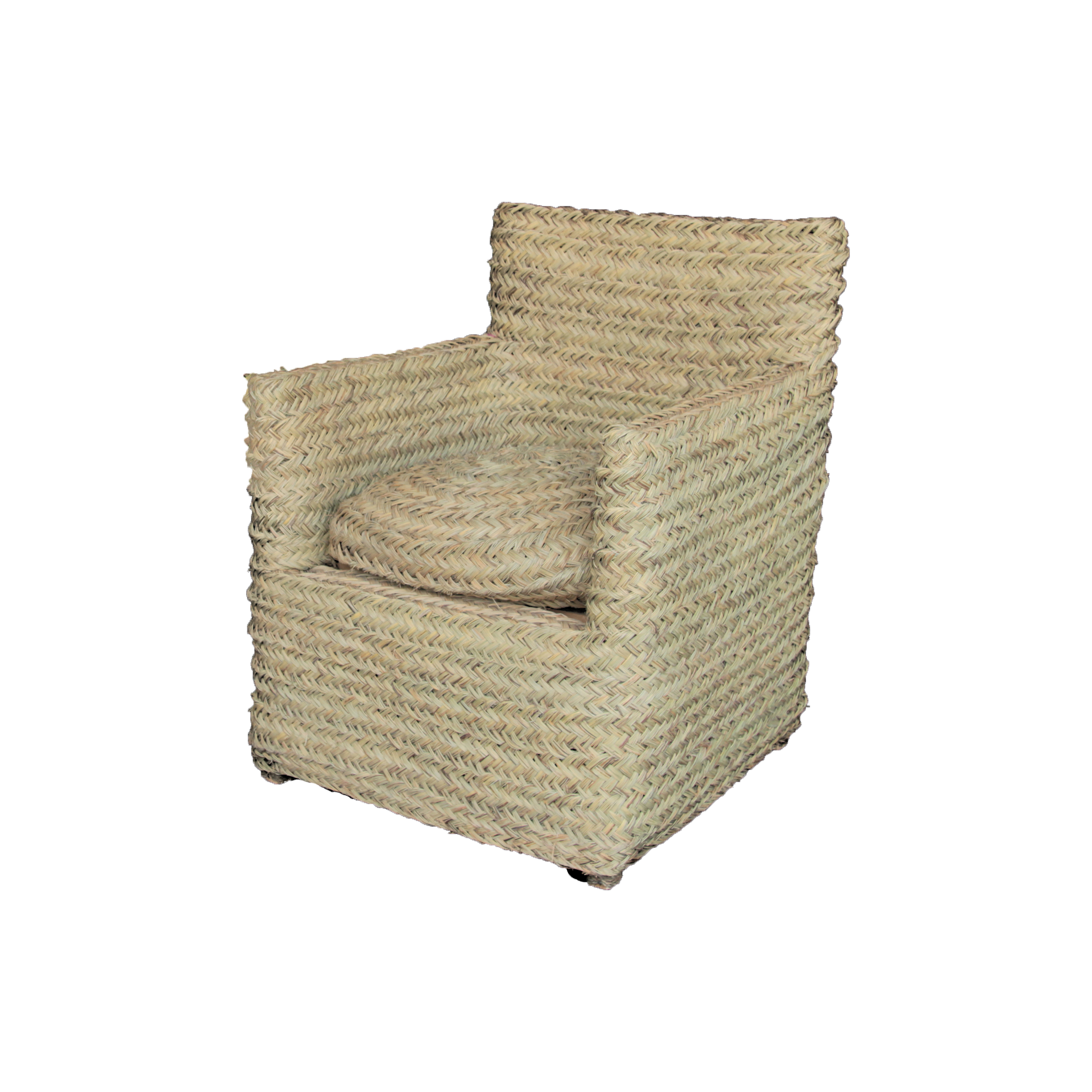 Sillón cuadrado de esparto. Cómodo asiento para cualquier parte del hogar que da un toque natural ideal para hacer un conjunto de jardín. Es un producto hecho a mano nacional con una larga tradición y muy resistente además de práctico.