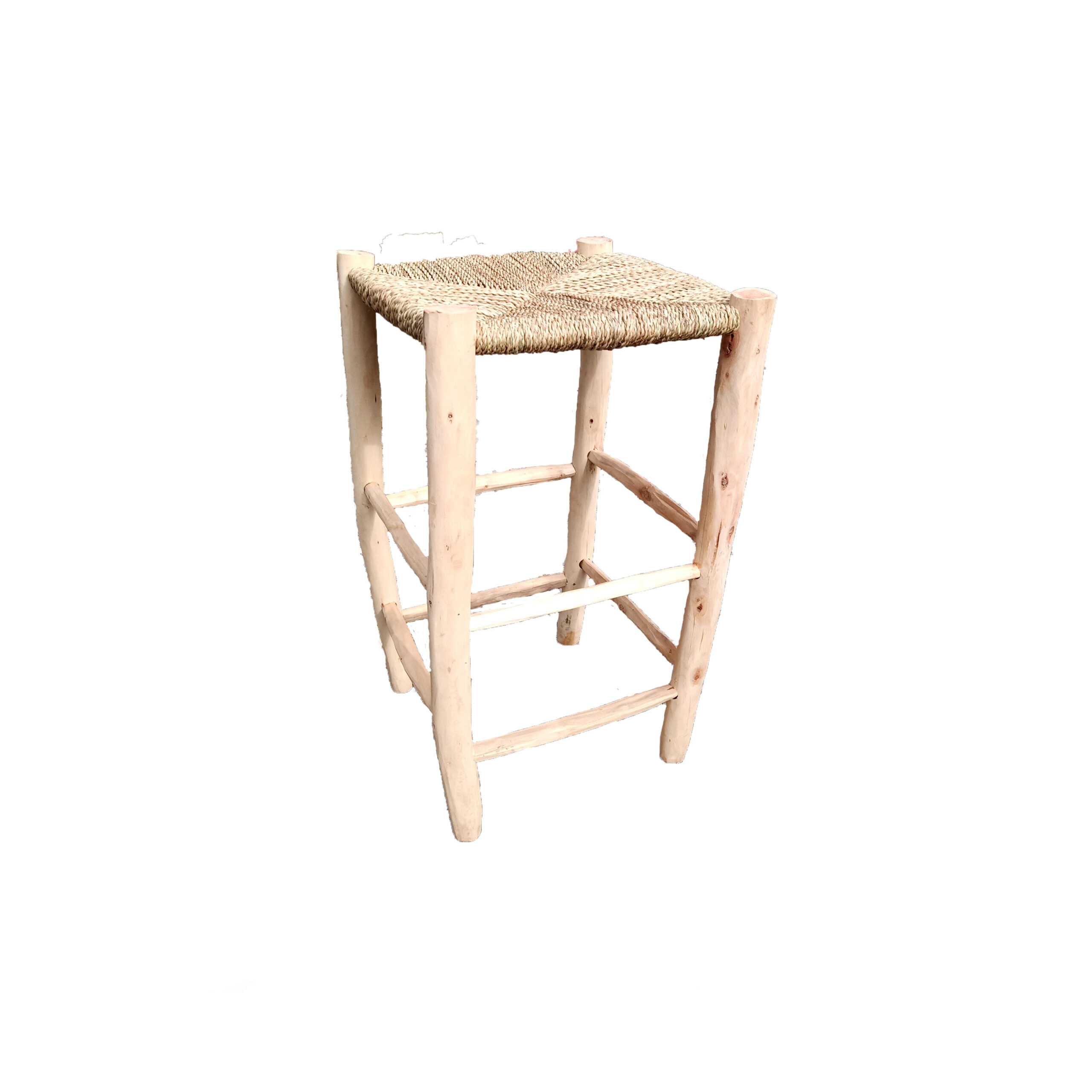 Taburete alto de bar con asiento de palmito. Cómodo asiento para cualquier parte del hogar o negocio que da un toque natural. Es un producto hecho a mano nacional con una larga tradición y muy resistente además de práctico.