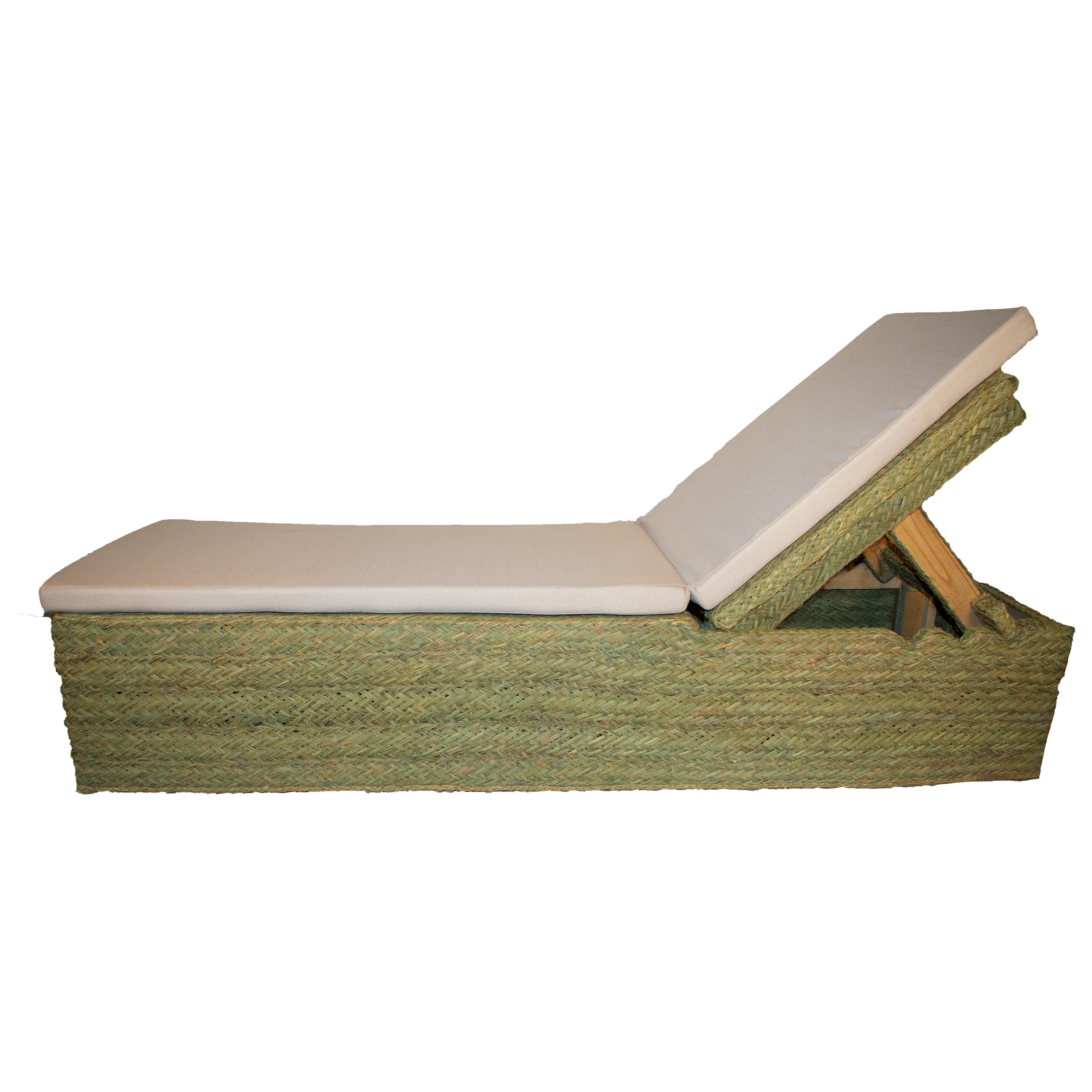 Tumbona alta de esparto con armazón de madera maciza y colchoneta. Respaldo abatible con diferentes posiciones. Perfecta para decorar el jardín o la piscina dando un toque natural y tradicional. Es un producto hecho a mano nacional con una larga tradición y muy resistente además de práctico.
