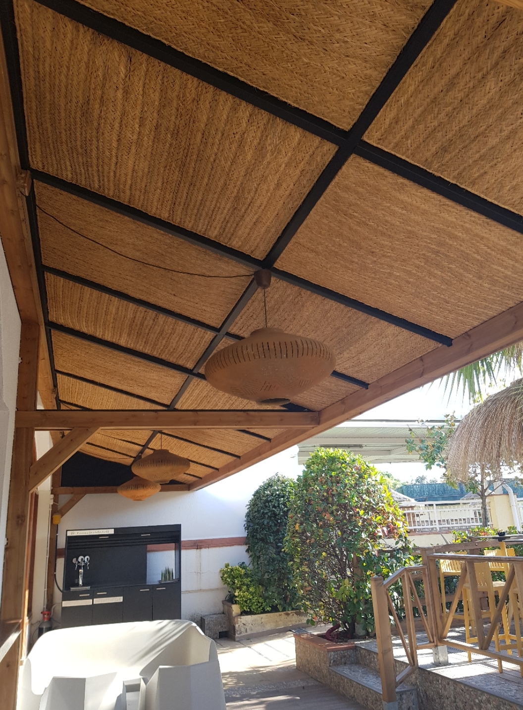 Techo de esparto a medida. Piezas de esparto para tupir cualquier techo. Es un producto hecho a mano nacional con una larga tradición y muy resistente además de práctico.