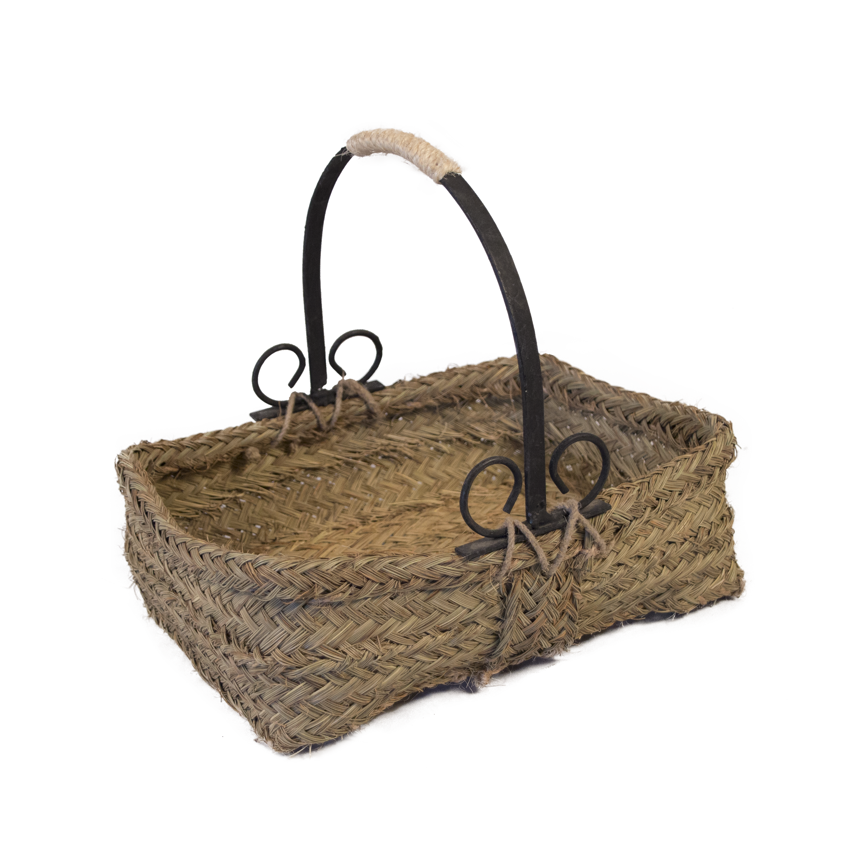 Cesta baja rectangular con asa de forja