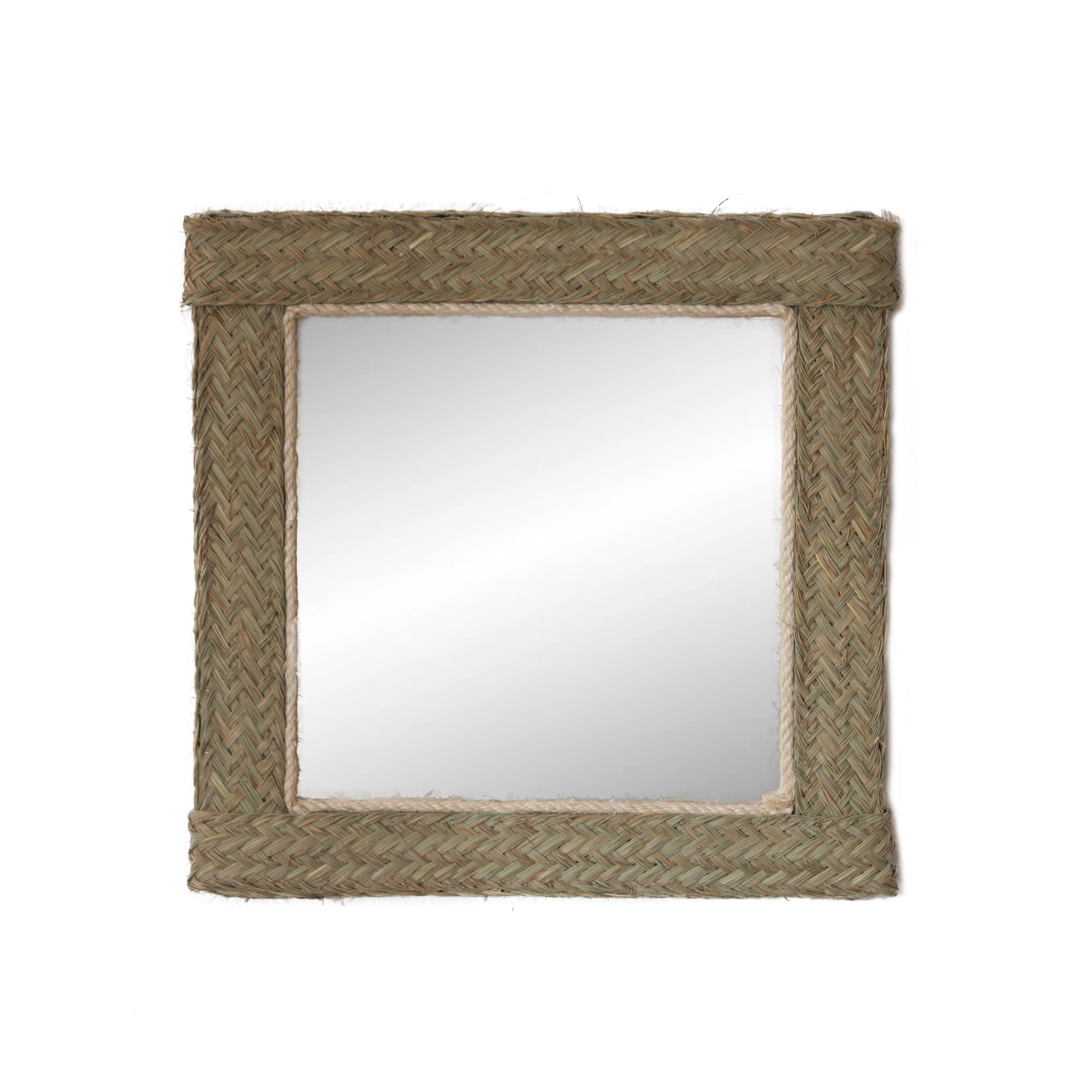 Espejo cuadrado de esparto natural con armazón de madera maciza y espejo. Marco realizado con pleita de esparto. Es un producto hecho a mano nacional con una larga tradición y muy resistente además de práctico.