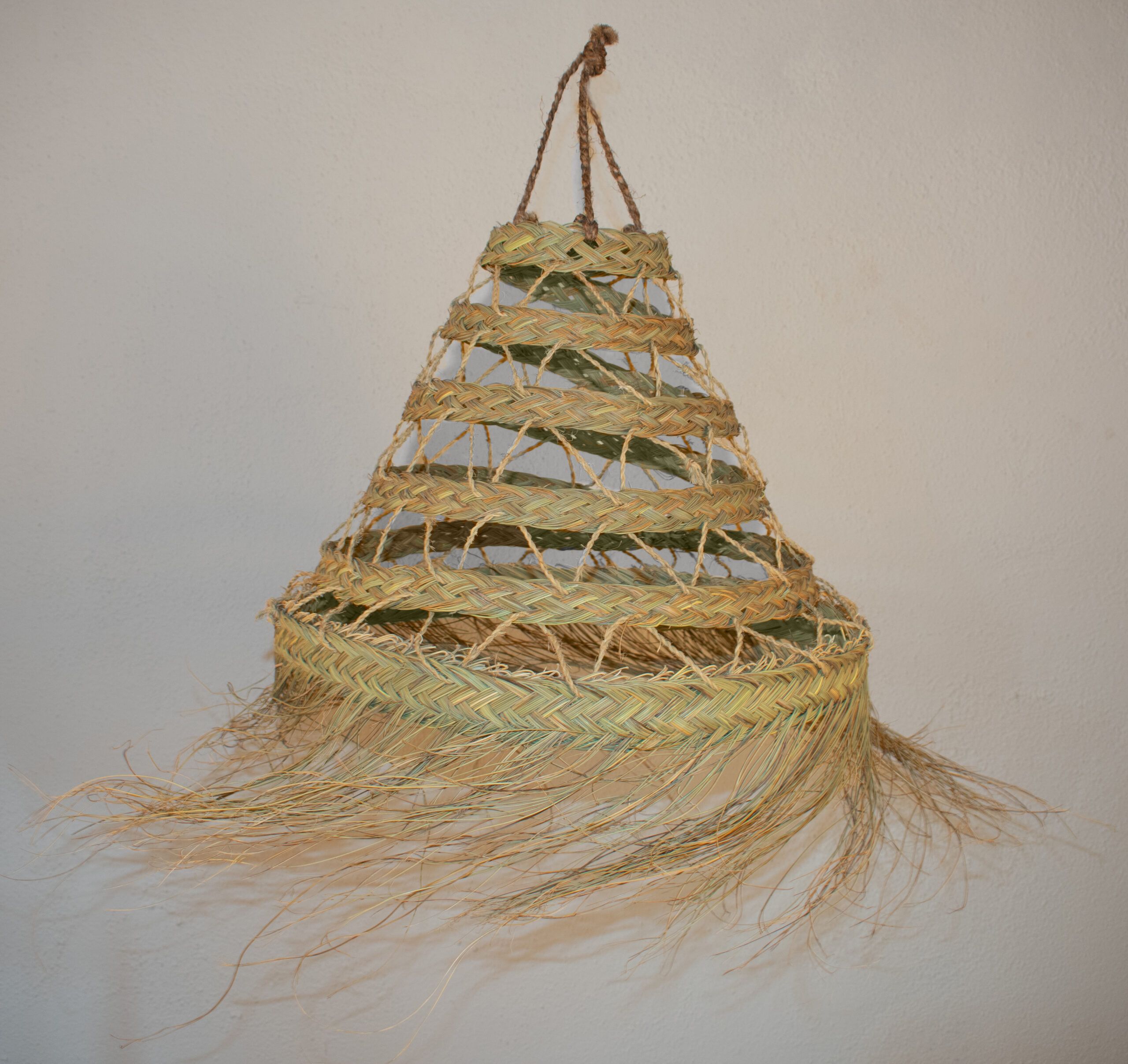 Lámpara cónica calada jareta alta con flecos de esparto. Ideal como detalle decorativo para crear ambientes únicos y dar al hogar, negocio o evento un toque natural. Es un producto hecho a mano nacional con una larga tradición y muy resistente además de práctico.