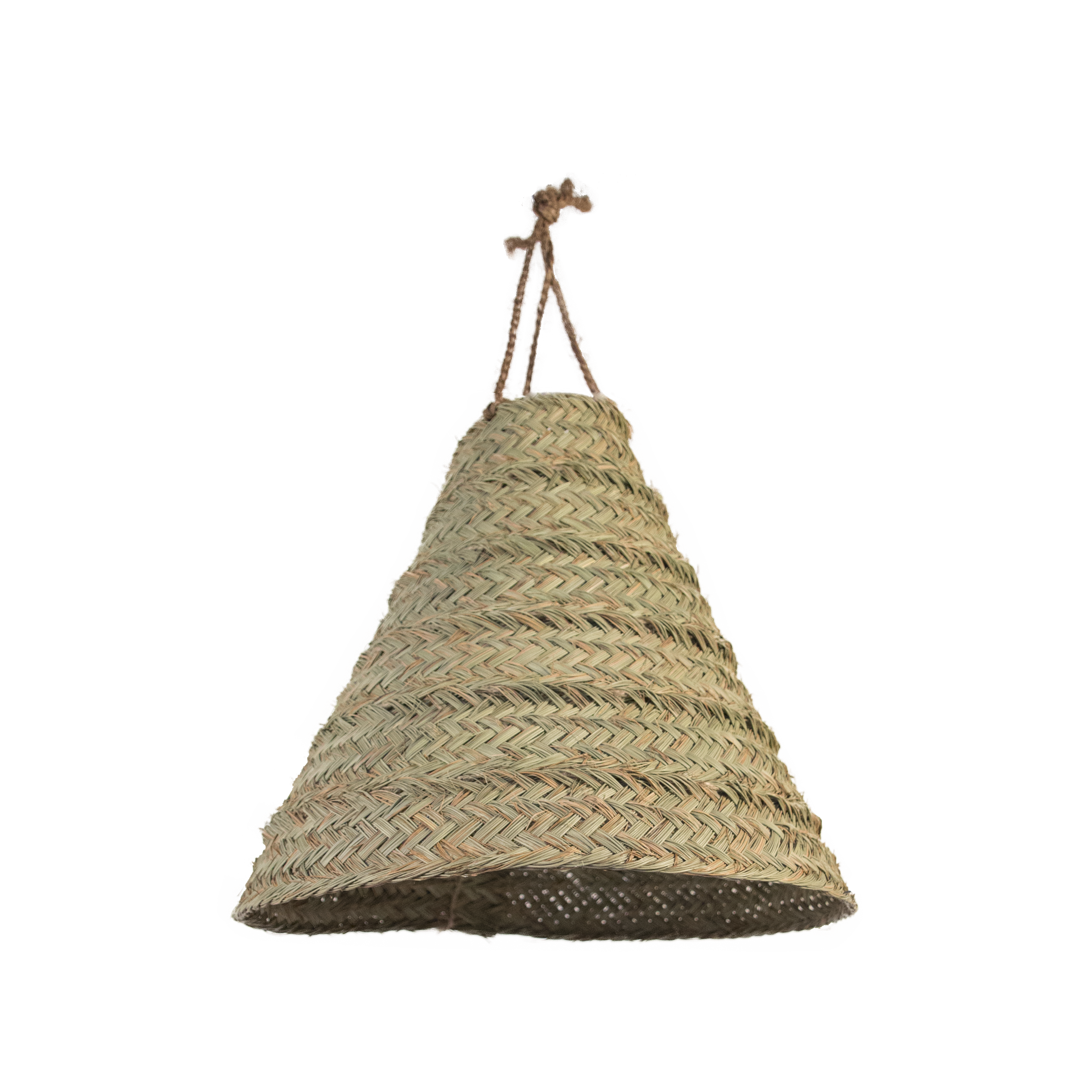 Lámpara cónica tupida alta de esparto. Ideal como detalle decorativo para crear ambientes únicos y dar al hogar, negocio o evento un toque natural. Es un producto hecho a mano nacional con una larga tradición y muy resistente además de práctico.