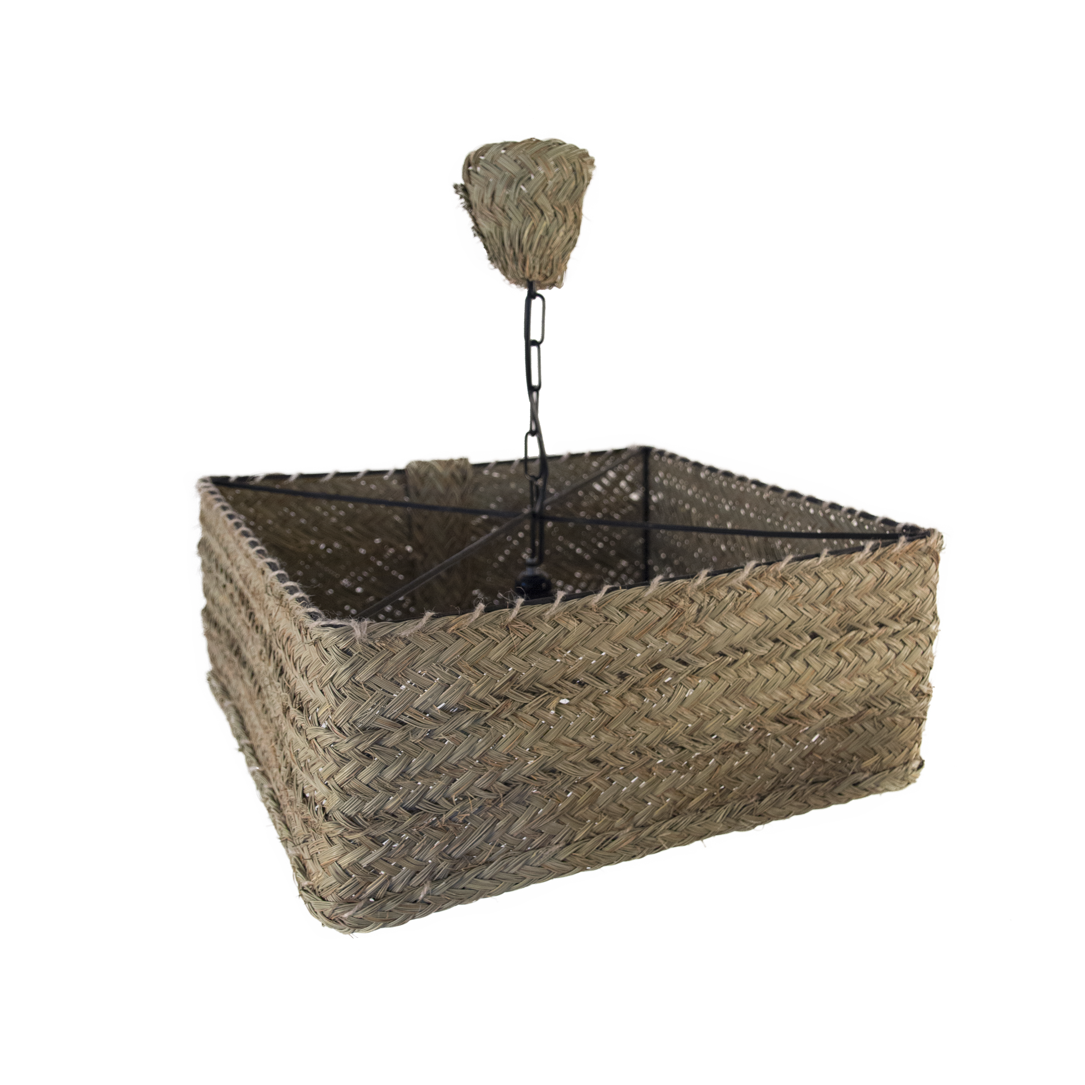 Lámpara cuadrada de esparto. Ideal como detalle decorativo para crear ambientes únicos y dar al hogar, negocio o evento un toque natural. Es un producto hecho a mano nacional con una larga tradición y muy resistente además de práctico.