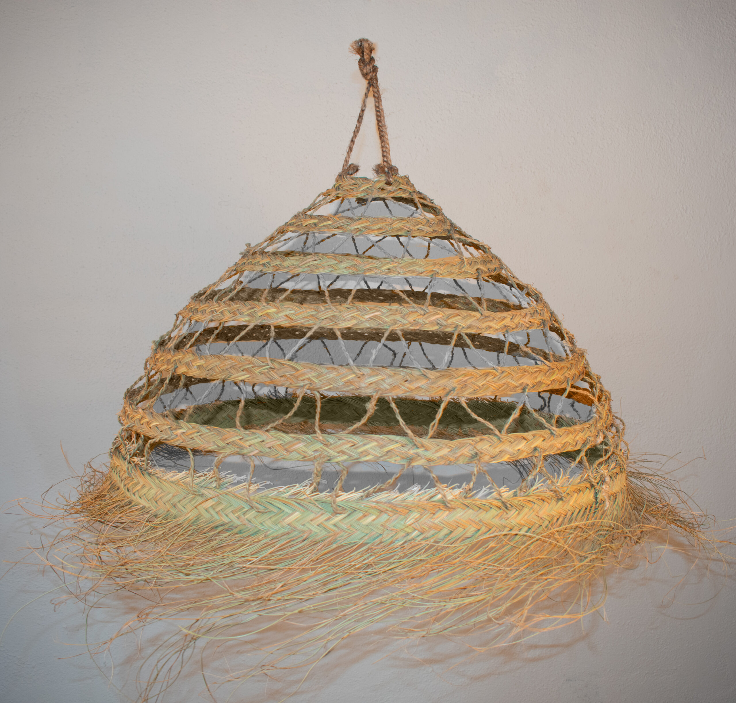 Lámpara iglú calada jareta con flecos de esparto. Ideal como detalle decorativo para crear ambientes únicos y dar al hogar, negocio o evento un toque natural. Es un producto hecho a mano nacional con una larga tradición y muy resistente además de práctico.