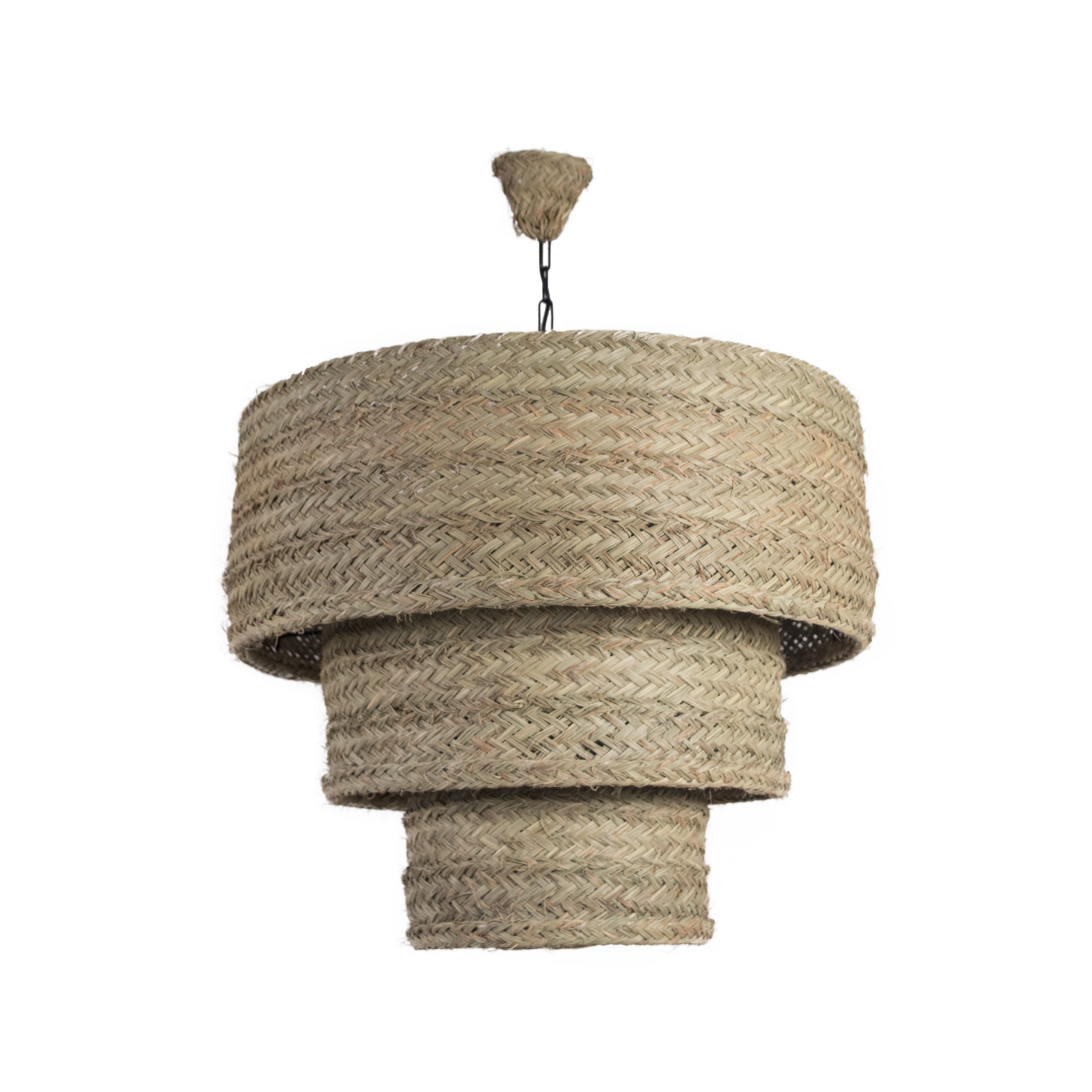 Lámpara redonda triple de esparto. Ideal como detalle decorativo para crear ambientes únicos y dar al hogar, negocio o evento un toque natural. Es un producto hecho a mano nacional con una larga tradición y muy resistente además de práctico.