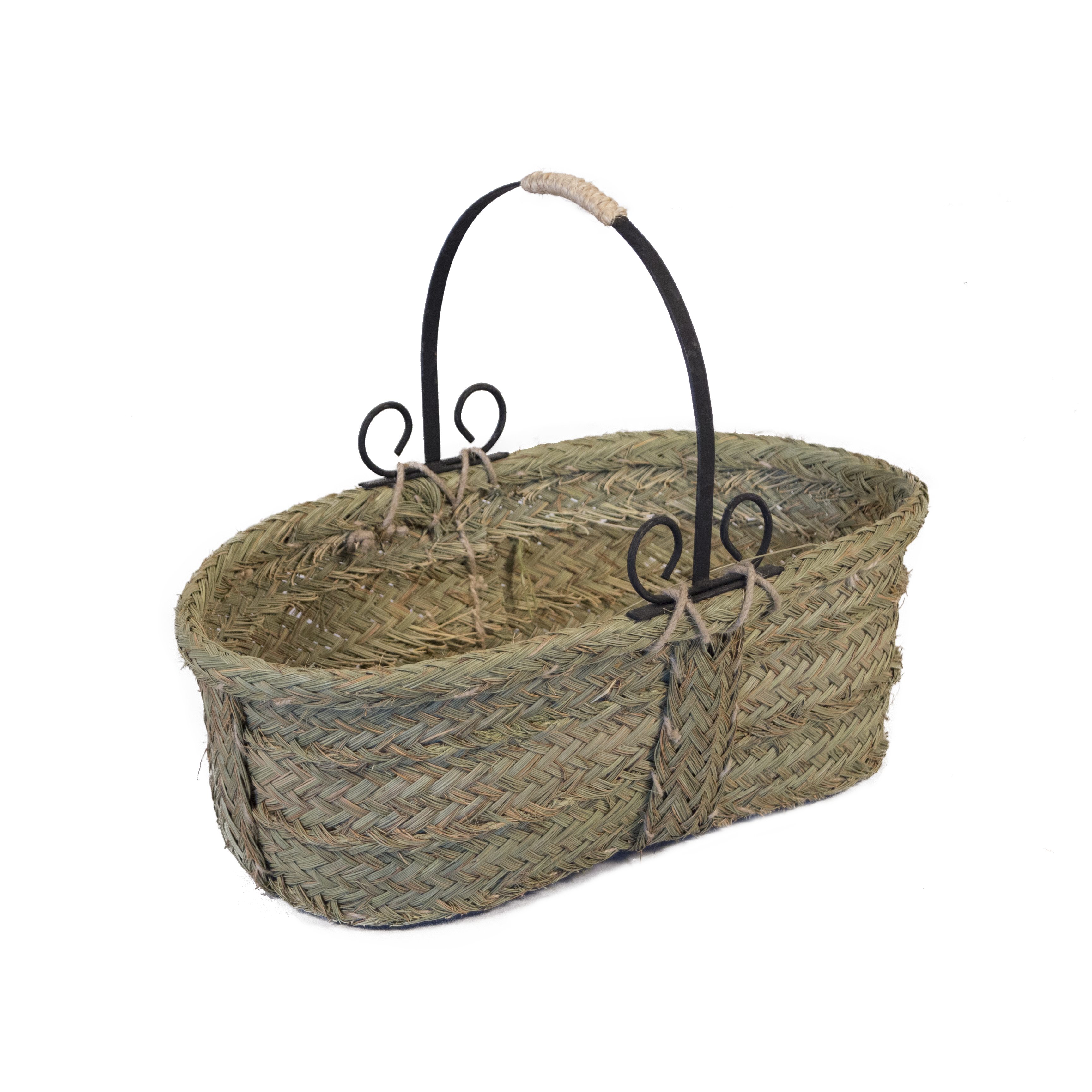 Leñera ovalada con asa de forja