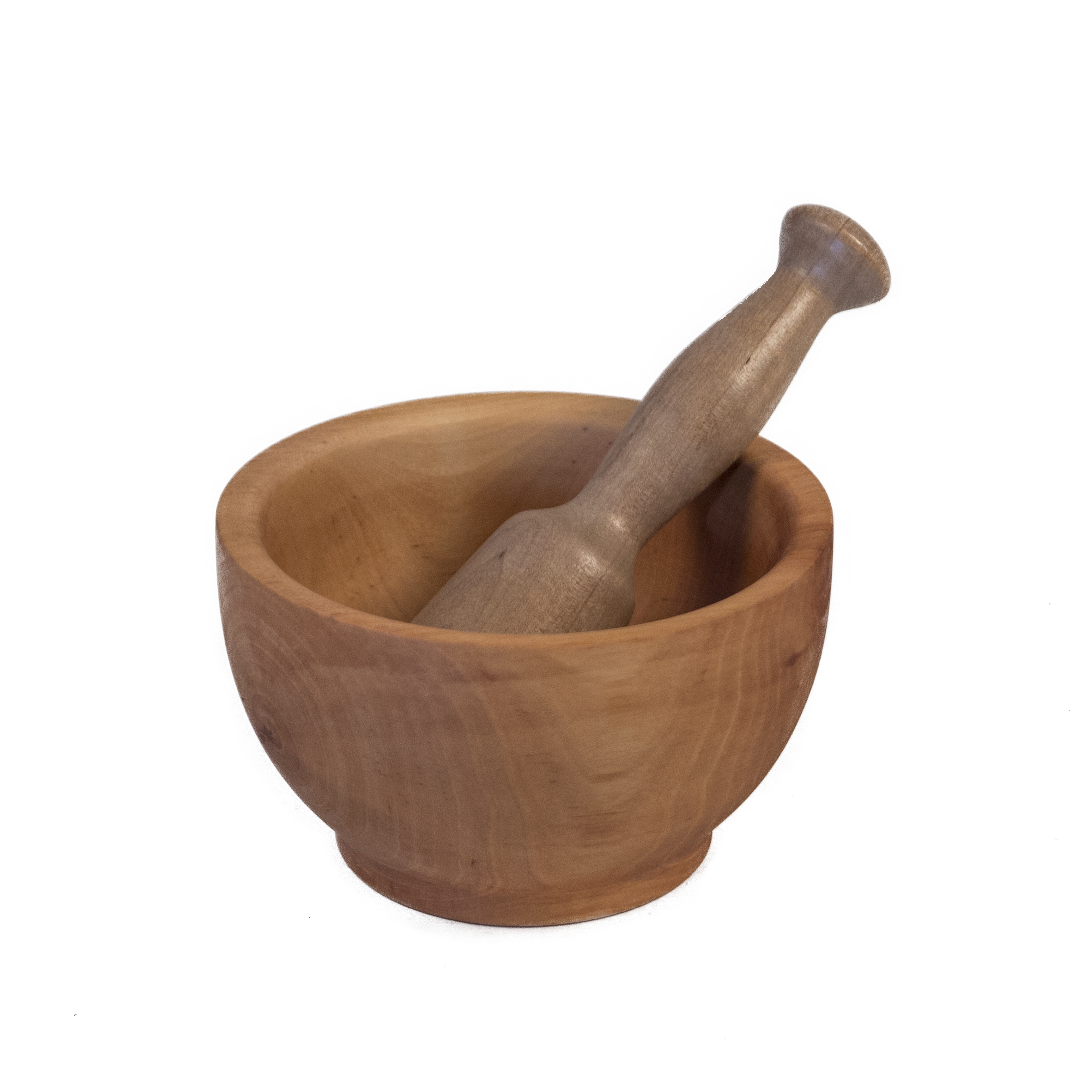 Mortero de mano con machacador de madera de abedul. Los morteros son muy útiles en la cocina para majar el ajo y perejil, así como para preparar cualquier tipo de salsa.